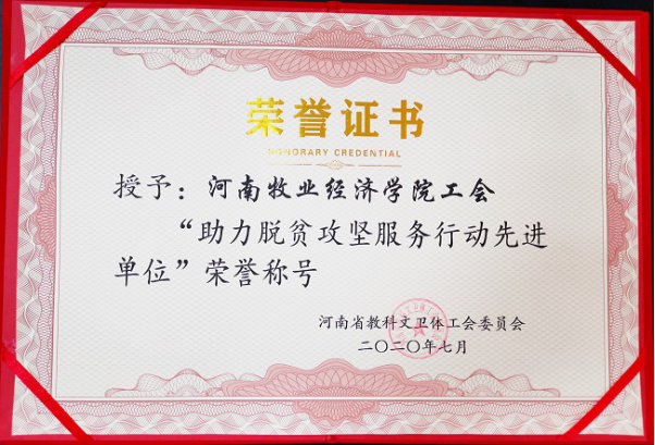 近日,河南省教科文卫体工会下发《关于表彰全省系统工会工作先进集体和助力脱贫攻坚服务行动先进单位的决定》和《关于表彰全省系统模范职工之家、模范职工小家、优秀工会工作者和命名全省系统优秀工会积极分子、优秀工会之友的决定》,437ccm必赢国际官网工会被授予“河南省教科文卫体系统助力脱贫攻坚服务行动先进单位”荣誉称号,工商管理学院分工会被授予“模范职工小家”荣誉称号。罗士喜同志荣获“优秀工会之友”荣誉称号,吴艳芳同志荣获“优秀工会工作者”荣誉称号,张胜波同志荣获“优秀工会积极分子”荣誉称号。