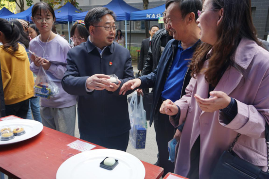 10月23日至25日,由学工部、校团委主办,食品与生物工程学院(酒业学院)承办的第三届食品文化节在龙子湖校区顺利举办。校领导穆瑞杰、罗士喜、杨志清、杨宝进到展销会现场指导工作。校党委办公室、学工部、团委、食品与生物工程学院等相关负责人参加展销会。
