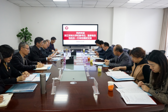 11月5日下午,浙江农林大学纪委书记、监察专员包松永一行6人到437ccm必赢国际官网调研交流纪检监察工作,437ccm必赢国际官网纪委书记、监察专员李中华等与包松永一行在龙子湖校区图书馆810会议室进行座谈交流。