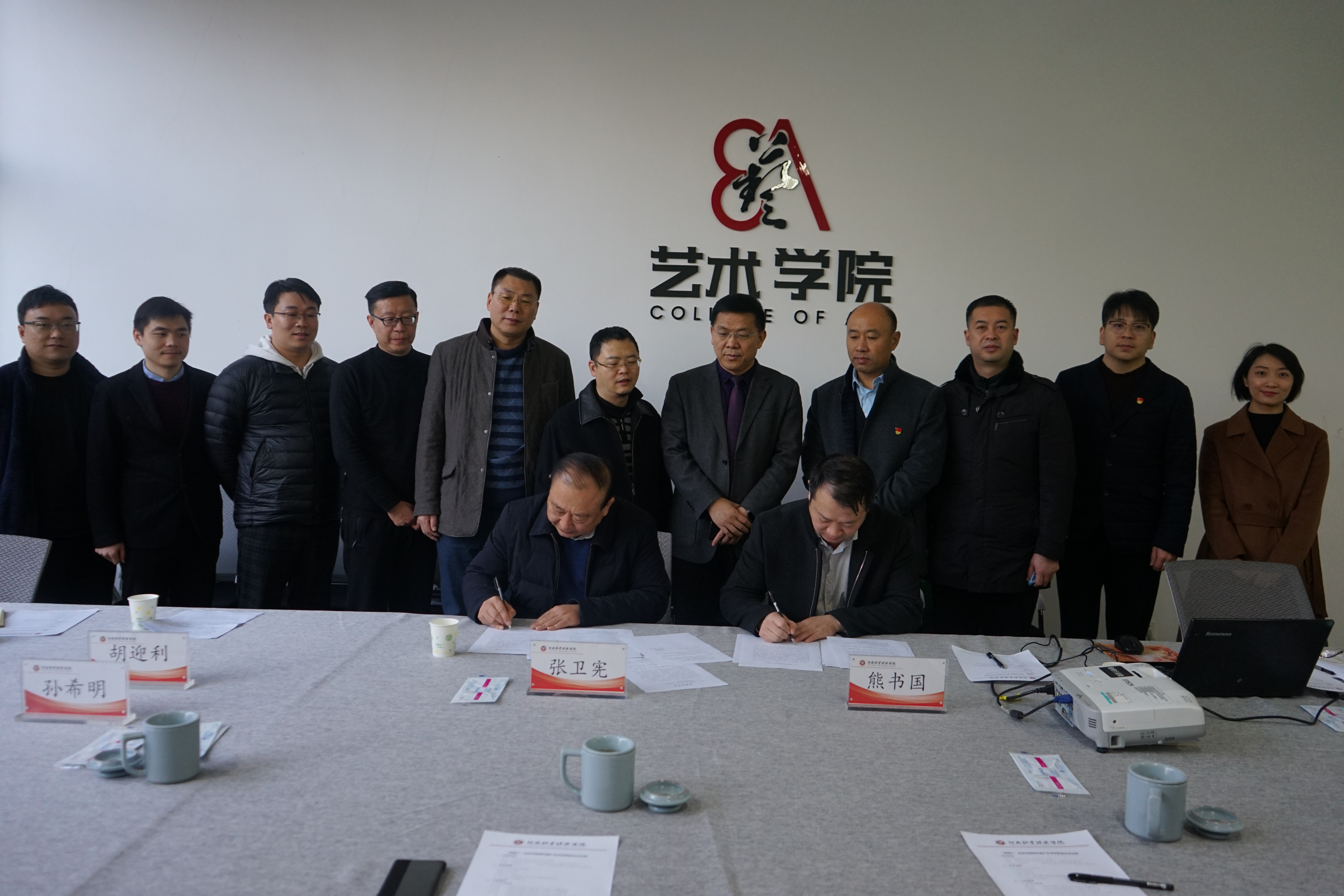 期间,张卫宪、熊书国代表校企双方签订捐赠协议。与会人员就艺术设计产业学院的建设计划、安排、措施等问题进行深入的座谈交流。