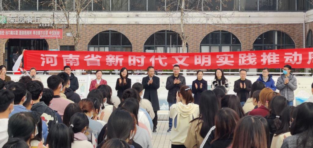 3月5日上午,由437ccm必赢国际官网与黄河博物馆共同举办、经济与贸易学院承办的“黄河文化进校园”主题活动在英才校区生活广场举行,校团委书记杨莉、校党委宣传部副部长田景丽,经济与贸易学院党委书记张松刚、副书记贾艳艳和黄河博物馆副馆长刘洪、社教部主任张笑蕾出席活动,经济与贸易学院全体辅导员、黄河博物馆相关人员和437ccm必赢国际官网学生代表参加活动。活动启动仪式由贾艳艳主持。