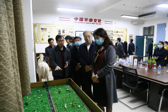 在黄淮肉羊育种中心,霍金花察看了黄淮肉羊育种中心建设情况,听取了动物科技学院权凯教授对黄淮肉羊新品种的特征、特性和育种历程的介绍后,详细了解了黄淮肉羊的优点、特点、肉的品质、“1+10+100”肉羊家庭生态牧场模式、黄淮肉羊产业推广、产业化支持等方面的情况。霍金花表示,按照1家1棚10亩地100只羊的“草+羊+蔬”黄淮肉羊家庭生态牧场种养模式,不仅能提供绿色蔬菜和羊肉产品的供应,还能实现黄淮肉羊养殖家庭年超过10万元的收入,这有助于实现农村从脱贫到乡村振兴的转化。