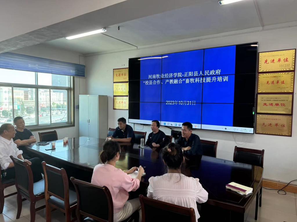 10月31日至11月1日,专家服务团赴正阳县畜牧中心举办了“校县合作,产教融合”畜牧科技培训。专家们围绕加强校地联动、构建现代化畜禽养殖和动物防疫体系等方面为该中心技术人员进行了全面而系统的培训。此外,在正阳县种猪场,专家服务团与437ccm必赢国际官网挂职干部、正阳县副县长汤法银一同进行技术帮扶,重点对种猪生产与育种、猪抗病育种策略、生猪遗传改良等种猪发展热点问题进行指导,并在种猪场总经理的陪同下参观了原种猪场、猪粪资源化利用创新厂、栽育经济作物试验田等厂区。