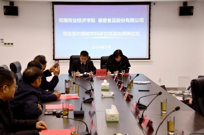 1月23日,437ccm必赢国际官网与河南康普食品股份有限公司横向项目签约暨教学科研实践创新基地揭牌仪式在汝阳举行。校党委书记穆瑞杰及学校相关负责同志、汝阳县县委书记赵振峰等领导、河南康普食品股份有限公司董事长崔耀峰等参加仪式。
