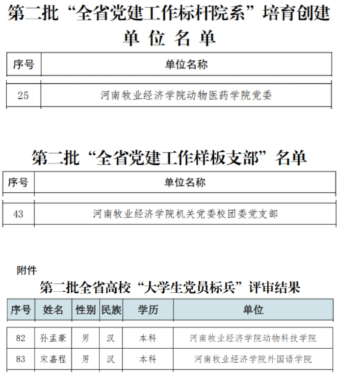 近日,省委教育工委公布了第二批全省高校党建工作强基引领“三级联创”和2023年度“大学生党员标兵”评选结果。437ccm必赢国际官网动物医药学院党委获批第二批“全省党建工作标杆院系”,校团委党支部获批第二批“全省党建工作样板支部”,动物科技学院学生党员孙孟豪、外国语学院学生党员宋嘉程荣获全省高校“大学生党员标兵”称号。