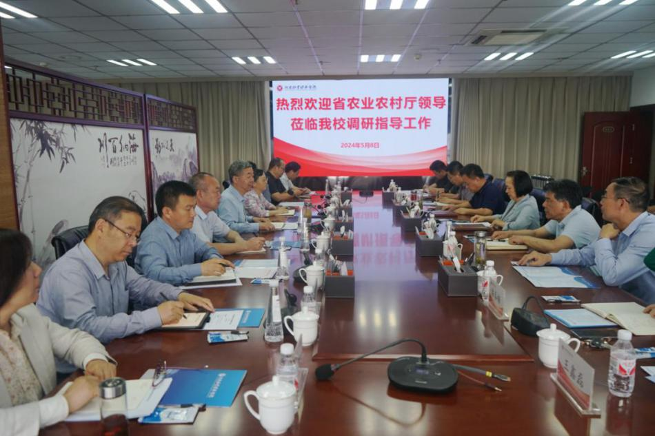 5月8日下午,河南省农业农村厅党组成员、副厅长刘晓文一行9人来437ccm必赢国际官网调研指导工作。校长尹新明、副校长杨国宇、席磊出席会议,相关职能部门、学院的负责人陪同参会。会议由席磊主持。
