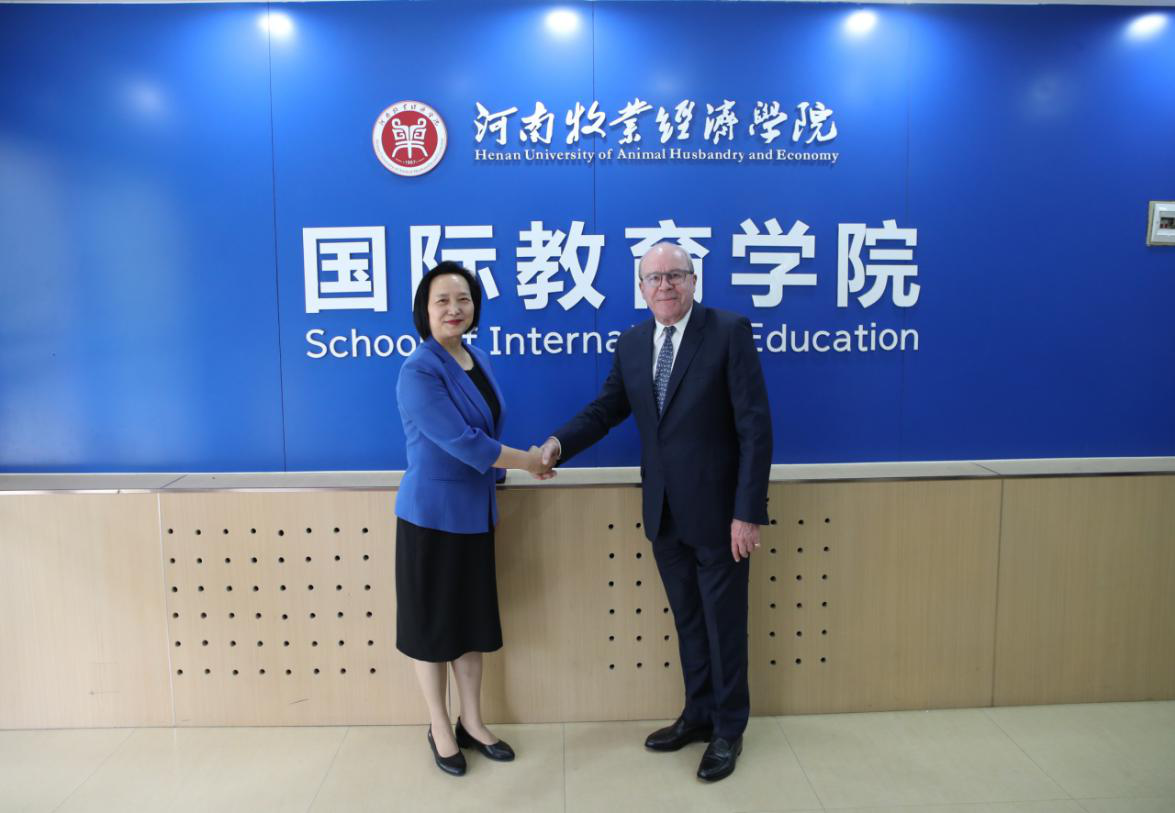 尹新明对史蒂芬·纳格校长一行的来访表示热烈欢迎,并简要介绍了学校在人才培养、学科建设、国际化发展等方面的办学情况。她指出,四年前两校携手同行、成功申报中澳合作办学物流管理专业,实现了学校国际化办学的历史性突破;四年来两校凝聚共识、勇毅前行,生源质量稳步提高,学生认同感和社会影响力逐步增强,项目整体呈现出起步稳、推进顺、效果好、声誉佳的特点。在合作项目首届学生毕业之际,史蒂芬·纳格校长一行再次亲临437ccm必赢国际官网,凸显了对合作办学项目的重视和对项目学生的关心,希望未来双方能够进一步深度融合、协同创新,促进项目提质增效、行稳致远,为加强中澳教育交流做出贡献。
