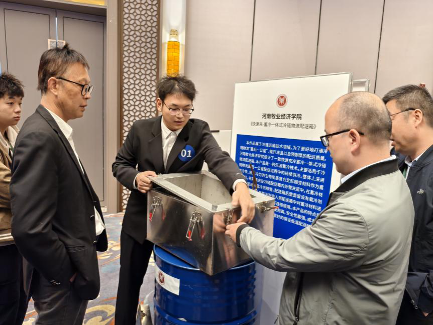 近日,由中国物流与采购联合会冷链物流专业委员会联合上海汉钟精机股份有限公司共同举办的“汉钟精机杯”第二届冷链技术创新大赛总决赛在浙江省嘉兴市举行。能源与智能工程学院师生选报的《快速充-蓄冷一体式冷链物流配送箱》、《智慧笼屉式冷链物流配送箱》项目,被评为最具创新研发荣耀先锋案例,分别荣获三等奖。
