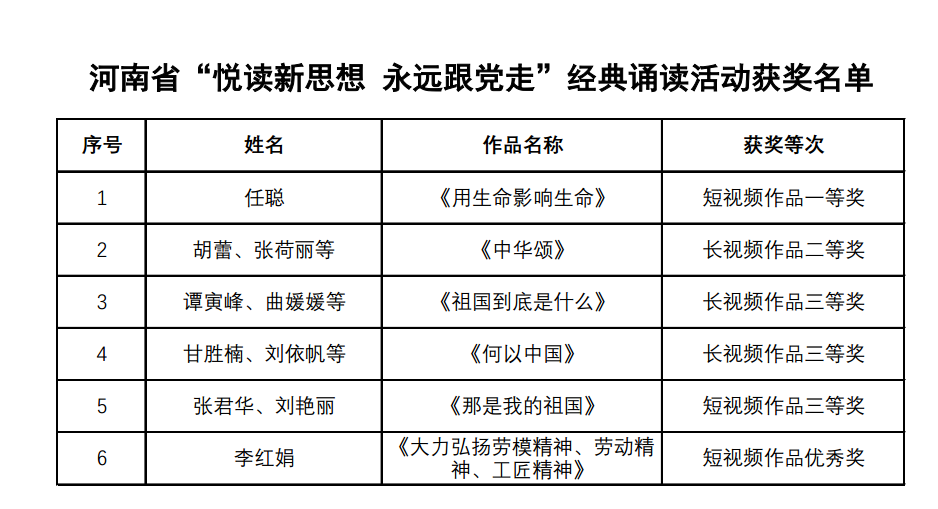 近日,由河南省教科文卫体工会举办的2024年“悦读新思想 永远跟党走”经典诵读活动评选结果揭晓,437ccm必赢国际官网荣获1个一等奖、1个二等奖、3个三等奖及1个优秀奖的优异成绩。