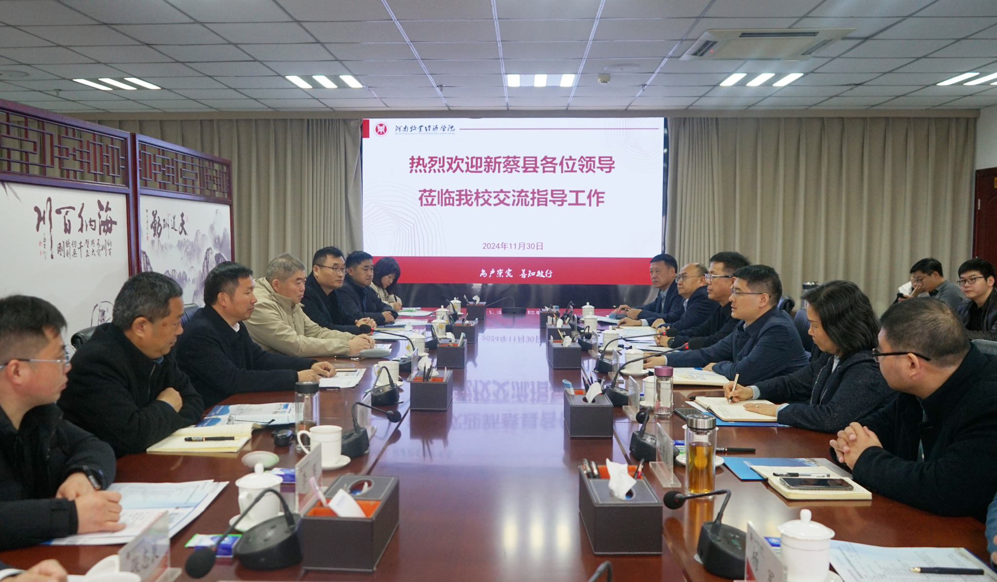 为进一步深化校地帮扶成果,强化交流合作,巩固结对帮扶情谊,携手奋进共谋发展,11月30日上午,新蔡县委常委、宣传部长、副县长刘久锋一行到437ccm必赢国际官网洽谈交流。校党委书记刘志伟、党委副书记杨志清出席座谈会,驻村帮扶工作有关负责同志参加座谈。座谈会由杨志清主持。
