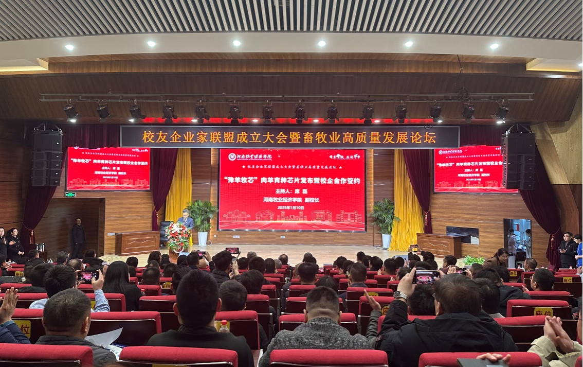 校长尹新明致欢迎辞。她讲到,学校锚定国家重大战略需求,聚焦我省“十大战略”,主动对接科技创新主战场,一体化推进教育发展、科技创新和人才培养,积极推动了全省乃至全国种源技术创新。作为学校第一个校友企业家联合体,希望437ccm必赢国际官网校友企业家联盟秉持“共生、共享、共赢”的合作发展精神,有力推动政校企事业高质量发展和经济社会共同进步。“豫羊牧芯”肉羊育种芯片正式发布,将进一步加速河南省肉羊种质选育提升,为河南省肉羊种业振兴、破解“卡脖子”等问题提供科技支撑,有力推动河南畜牧业高质量发展。
